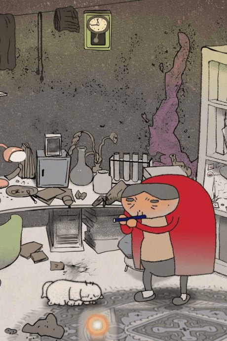 Poruszająca i introspektywna opowieść o starzejącym się mężczyźnie, który w rozpaczy po śmierci ukochanego psa decyduje się na desperacki krok, by go wskrzesić. Jednak jego działania prowadzą do przerażających konsekwencji – pies przemienia się w monstrum i połyka swojego pana. Uwięziony wewnątrz, mężczyzna zostaje zmuszony do konfrontacji z własnymi wspomnieniami, błędami i ostatecznie, do poszukiwania sensu swojego życia. Animacja ta, będąca pracą dyplomową Uniwersytetu Sztuk w Tokio, oferuje głębokie studium żałoby, winy i odkupienia, przedstawione w surrealistycznej i niepokojącej formie.